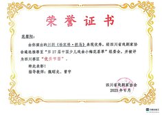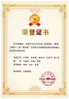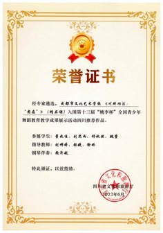 2023年6月,精品课《川剧功法:“团扇”》入围第十三届“桃李杯”全国青少年舞蹈教育教学成果展示活动四川推荐作品;