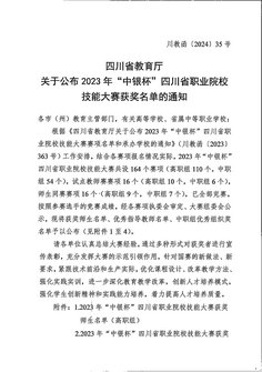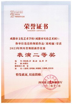2023年11月,《晨曦初露》获2023年“中银杯”四川省职业院校技能大赛中职组“舞蹈表演”(中国舞表演方向)赛项一等奖;(见川教函【2024】35号)