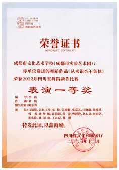 2023年11月,《紫陶灵》获2023年“中银杯”四川省职业院校技能大赛中职组“舞蹈表演”(中国舞表演方向)赛项一等奖;(见川教函【2024】35号)