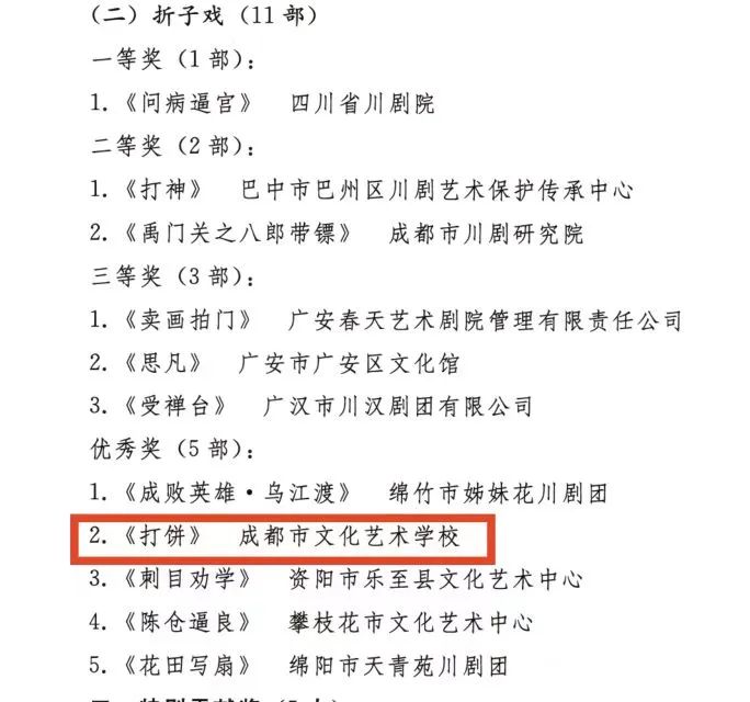 喜报 | FH在线平台(中国)官网川剧折子戏《打饼》荣获四川省第二届川剧汇演折子戏优秀奖