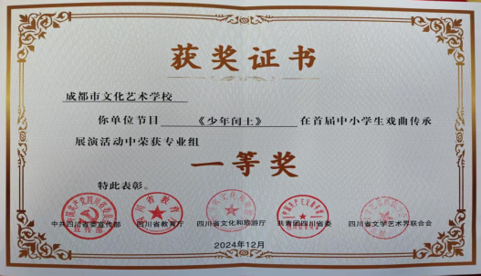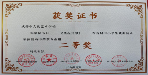 12.2024年12月,川剧《活捉三郎》获首届中小学生戏曲传承展演活动专业组二等奖;