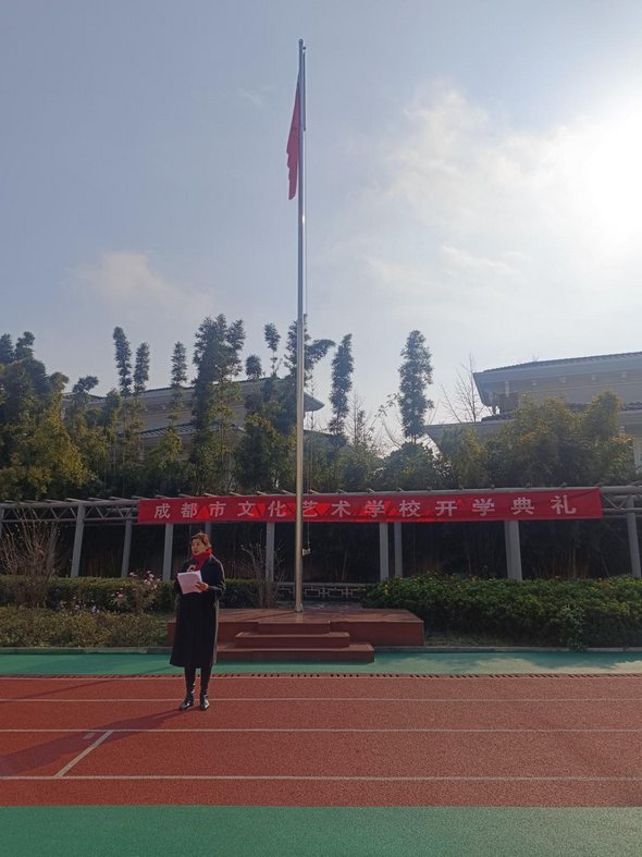 来自2022级川剧班的林芯宇同学作国旗下讲话,她回顾了近三年来在学校的点点滴滴,得益于师长的引领与帮助、同学的加油和互助,成就了今天的我们。希望同学们在艺校的时光里,收获知识,收获成长,实现自己的艺术梦想,“知不足而奋进,望远山而前行!”