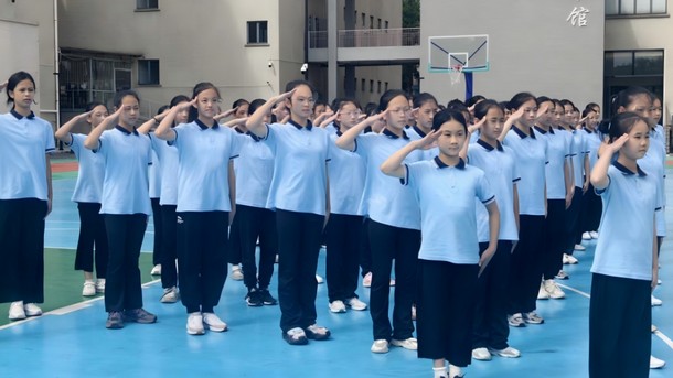 庄严的升旗仪式后,学生代表范肖博睿希望同学们在接下来的七天里坚持训练、懂得协作、锤炼品格,用实际行动展现新时代少年的风采。