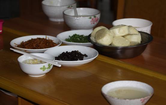 1、 早餐、三菜一汤(米汤)。