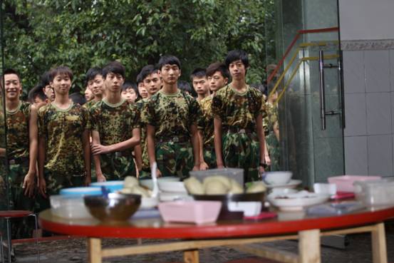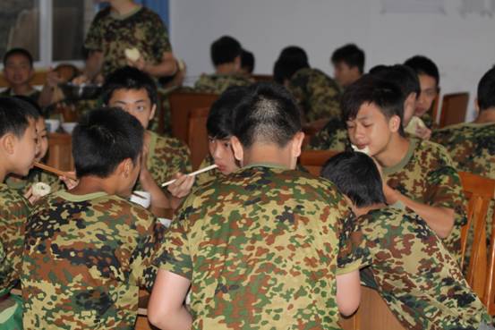 5、 饭前军歌是惯例。