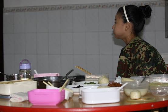 8、 女兵们也吃得很咋劲。