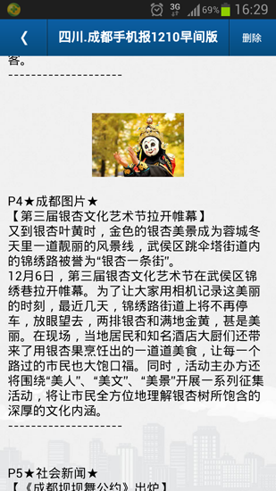 12月10日,成都全搜索以图文形式,通过“四川成都手机报”向用户发送关于银杏节信息,目前,手机报用户超过50万。下图为手机截屏。