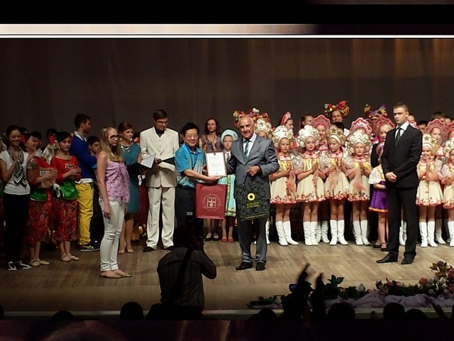 8月31日下午,代表团的舞蹈小演员们参加了“国际少儿舞蹈艺术节”开幕式演出。来自土耳其、捷克、波兰以及中国等国家的舞蹈小演员们兴高采烈,欢聚一堂,相互切磋技艺和观摩学习,现场气氛融洽,演员们的脸上都荡漾着幸福的微笑。在此次丰富多彩的艺术交流与演出活动中,大家真诚相待,彼此关爱和帮助,使我们深切地感受到此次的文化艺术交流活动其意义更加深远,不仅仅是各民族的舞蹈技艺的精湛展示,还有不同民族的语言和风俗的相互感染等等,充分体现了主办方以及参赛团队对每一个民族艺术的敬仰、热爱和尊重。而最能产生彼此间的共鸣的,就是富含民族色彩的艺术。我们小演员们的精彩表演,获得了俄罗斯观众的一致好评。尤其是我团小演员带去的《俏花旦》、《剪纸姑娘》以及《麻辣乖幺妹》三个经典舞蹈作品,以其新颖别致的音乐,独特的舞蹈艺术表演轰动全场。这三个舞蹈作品具有浓厚的四川地方特色,铿锵鲜明的川剧锣鼓,红绿相间的麻辣乖幺妹的服饰,欢快而俏皮的旋律,处处体现了漂亮、火辣的川妹子的性格特征,凭借摇曳多情的舞姿,独具风情的表演魅力,每次出场都赢得了现场观众长久雷鸣般的掌声。艺术无国界,让异国他乡的朋友们真正体会了一把“四川风情”、“成都休闲之都”的无穷魅力。由于代表团的精彩表演,被俄罗斯伏尔加格勒市政府授予“英雄城伏尔加格勒尊敬的客人——城市日节日”纪念证书及奖牌,为四川省、成都市争了光。