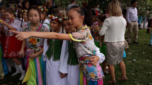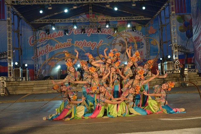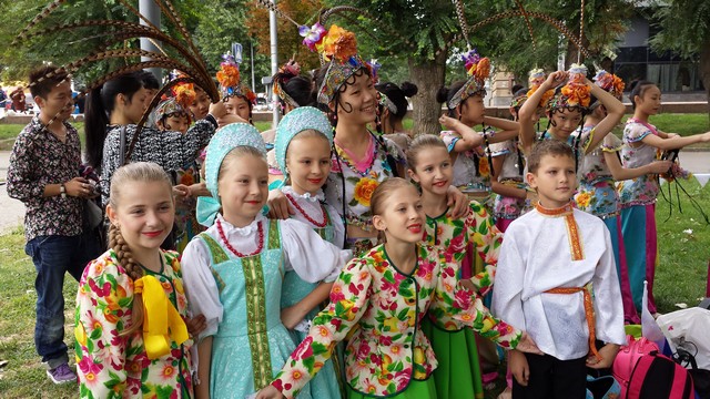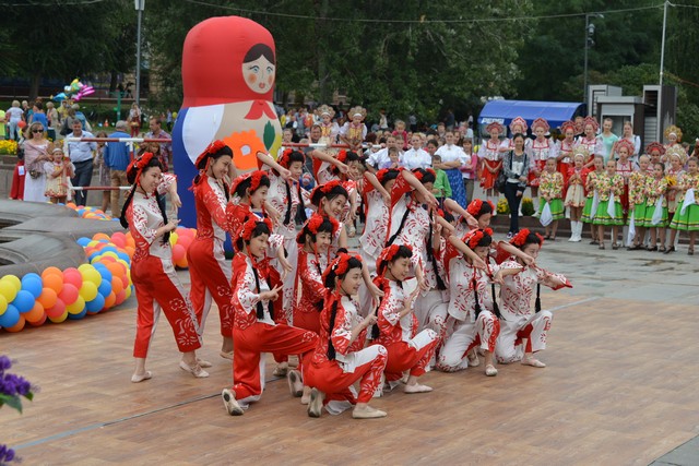 9月1日傍晚,举行了“城市日”滨河露台大联欢,在风景如画星光闪烁的伏尔加河畔,来自世界各国的小演员们同俄罗斯本地民众一道载歌载舞欢庆盛大的节日,一张张笑脸象晚霞一样灿烂美丽,不同肤色的人们在歌声和舞蹈中融合在一起,不知谁首先唱起了我们最熟悉的“成都欢迎您!我的远方的朋友.....”