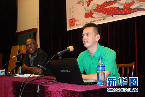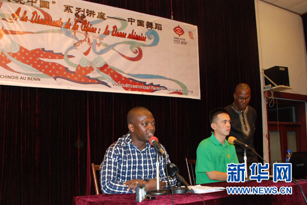 新华网洛美7月22日电(记者张改萍 雷同玲)18日,贝宁中国文化中心举办中国民族舞短期培训班开班仪式暨《发现中国》系列讲座之“中国舞”讲座,贝宁文化部文化艺术促进司司长伊杜、中国驻贝宁使馆文化参赞兼贝宁中国文化中心主任白光明、贝宁高等职业艺术学校师生、联邦舞蹈团成员、贝宁中国文化中心学员和社会各界舞蹈爱好者百余人出席了开班仪式。