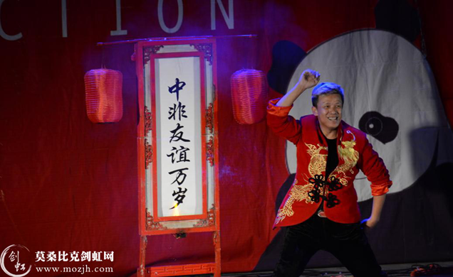 艺术团独具特色的民族吹管乐《凉山风情》,是老艺人一共使用埙、葫芦丝、巴乌、马布和笛子五种乐器进行演奏;魔术《中国红》、情景表演《快乐熊猫》、韵味无穷的《茶馆》文化、西域特色的《青藏高原》等节目,都受到在场观众热烈的掌声与赞扬。特别是主持人姚佳一首当地莫桑比克歌曲,调动了现场观众的热情,大家随着音乐、和着节奏一齐拍掌。