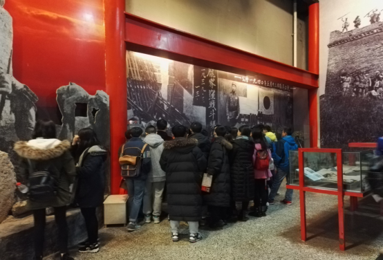 集体活动结束后,全校学生共分六个小组,在建川博物馆6名讲解员和FH在线平台(中国)官网导游班学生带领下,分别参观抗日系列纪念馆(中流砥柱、飞虎奇兵馆、不屈战俘馆、川军抗战馆、正面战场馆、中国老兵手印广场),学生们一边参观一边记录,认真倾听讲解员精彩讲解,在抗战纪念馆中学生们深入了解了中华民族半个世纪前轰轰烈烈的卫国战争和艰苦卓越的抗战历史。当看到杨靖宇将军牺牲后的照片,敌人残忍地铡下了他的头颅,又剖开了他的腹部的画面,同学们对日本侵略者残忍杀害和凌辱我同胞深恶痛绝。