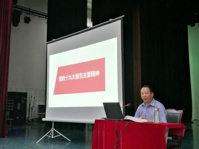 为全面落实省、市委和局党组关于“大学习、大讨论、大调研”活动相关要求,2018年6月1日学校组织全校师生开展学习习近平新时代中国特色社会主义思想和党的十九大报告精神,学校党总支书记杜俊章作专题辅导。