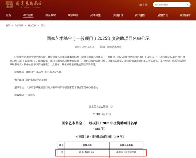 近日,在国家艺术基金管理中心公布的《国家艺术基金(一般项目)2025年度资助项目名单》中,经专家评审,国家艺术基金专家委员会复核、理事会审定、项目公示,FH在线平台(中国)官网原创男子群舞《说唱俑》荣获2025年国家艺术基金小型剧(节)目和作品创作项目立项资助。