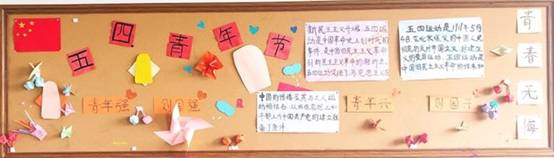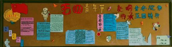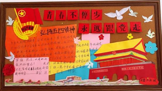 为深入学习贯彻习近平总书记在纪念五四运动100周年大会上重要讲话精神,号召全校师生传承和发扬五四精神,努力学习、奋发向上,营造积极向上的校园文化。学校开展了纪念五四运动主题班级板报展评活动,本次板报由10个班级完成,同学们认真策划、精心制作,板报内容紧贴主题,布局合理,为校园增添了一道亮丽的风景线。